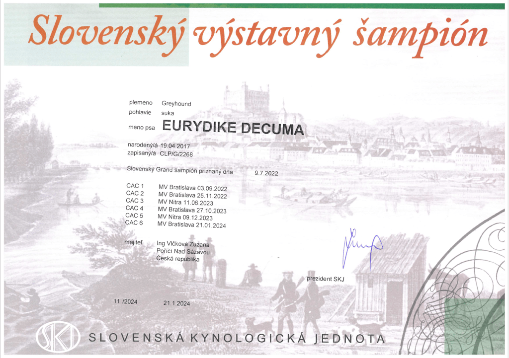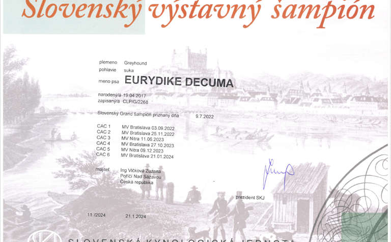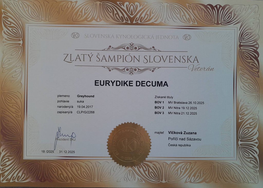 C. I. B. Multi Ch. Grand Ch. (CZ, SK, DE, AT, PL, HU) Eurydike Decuma (Grace)