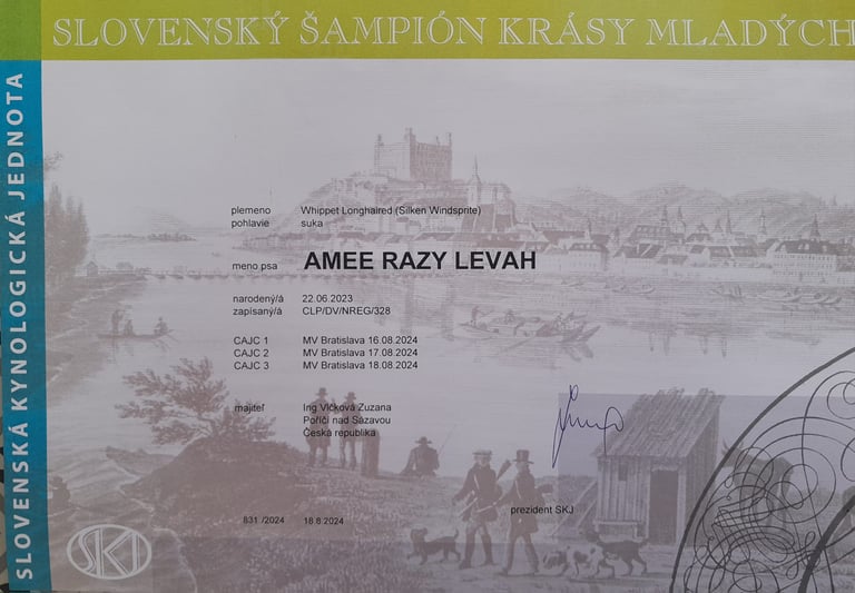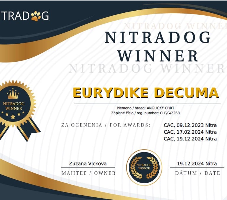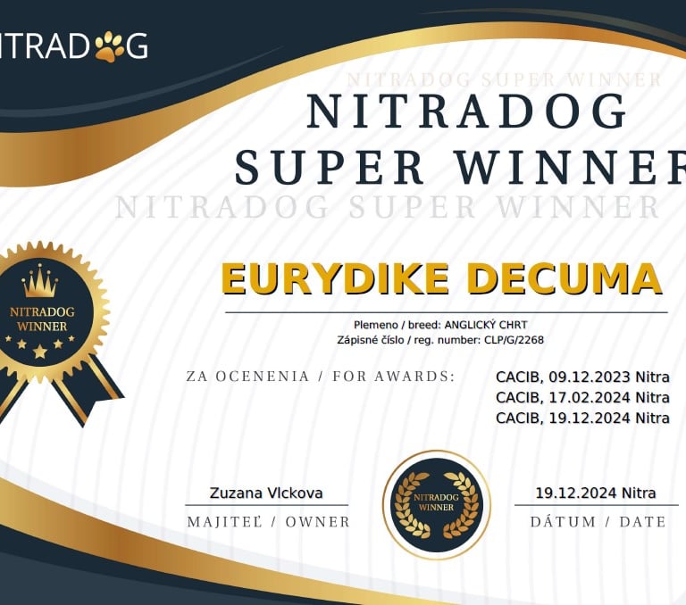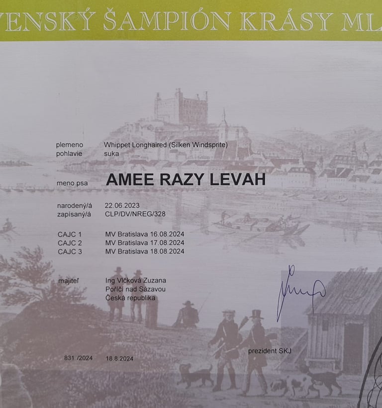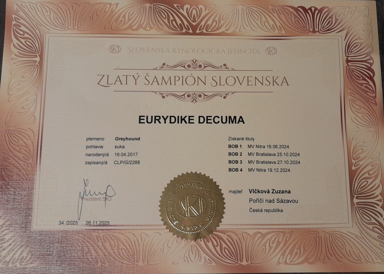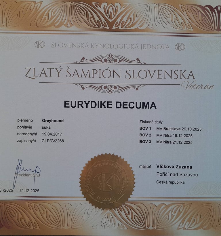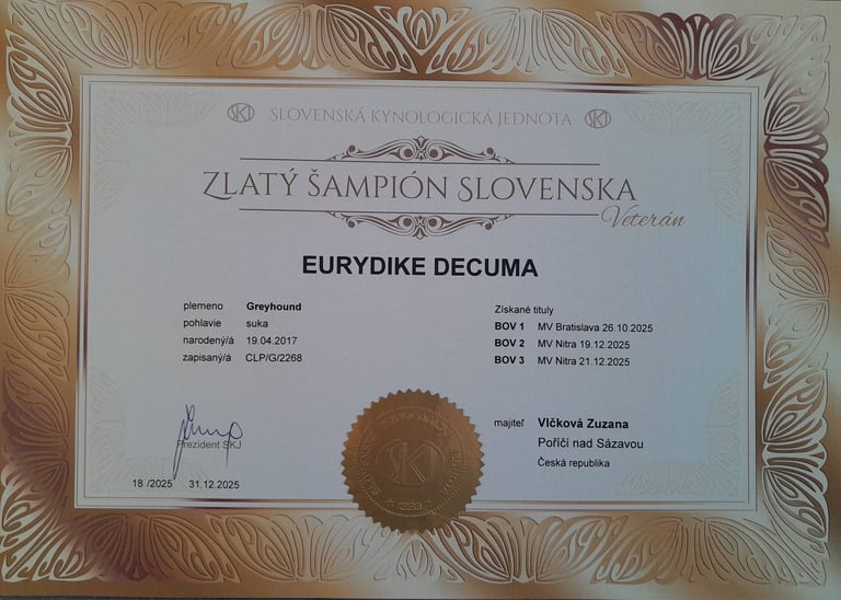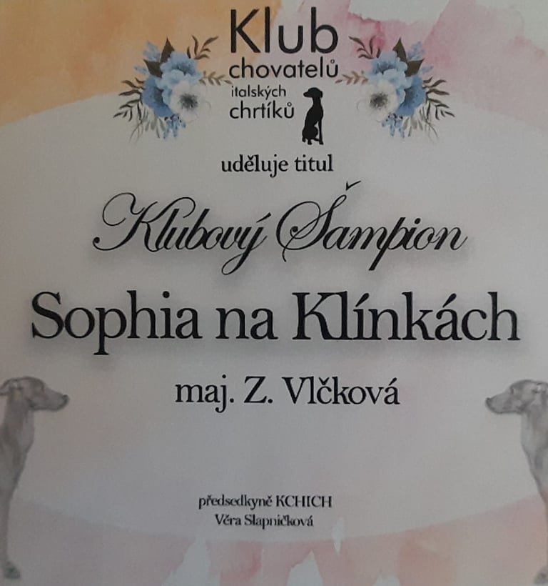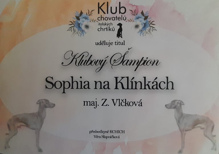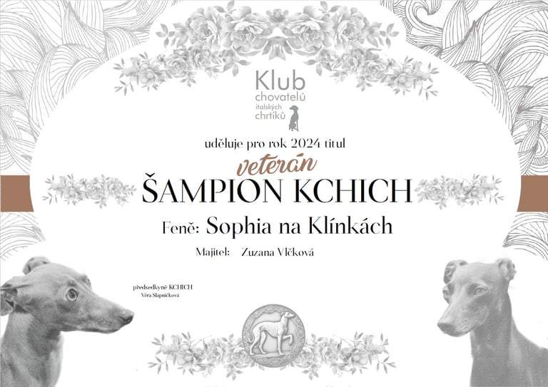 16.3.2025 Sophia je oficiálně Veterán šampion klubu chovatelů italských chrtíků