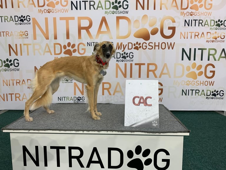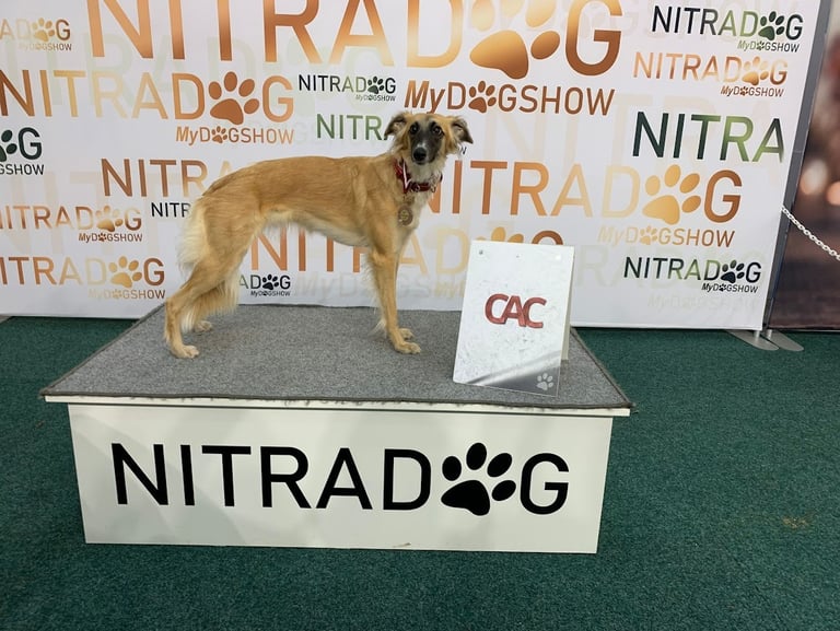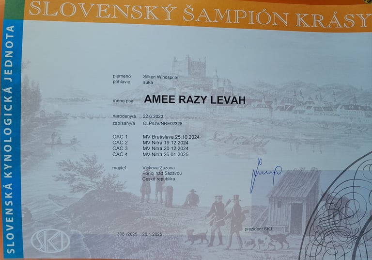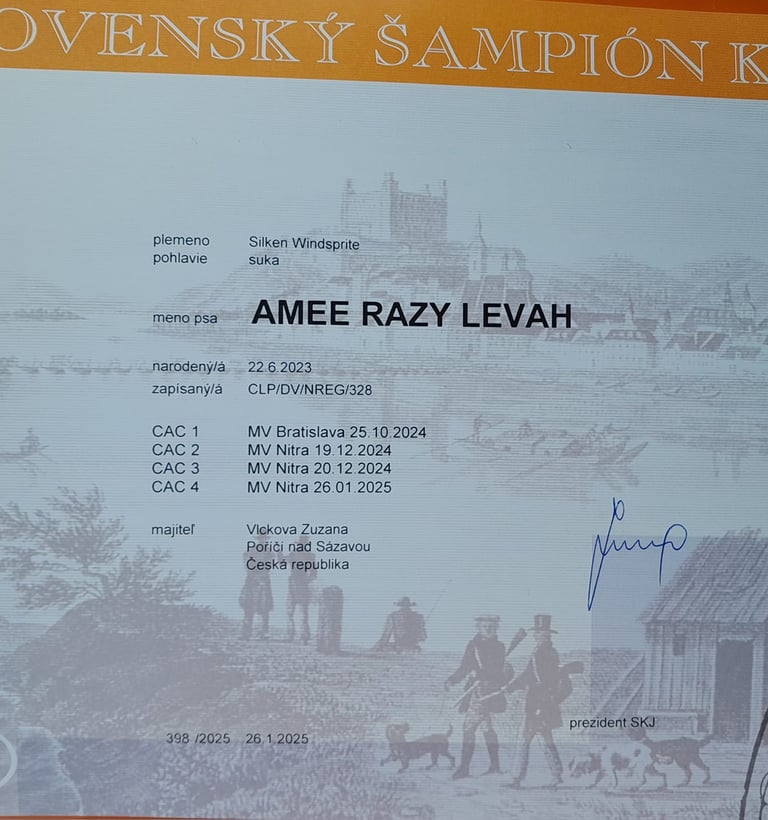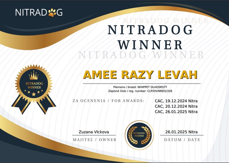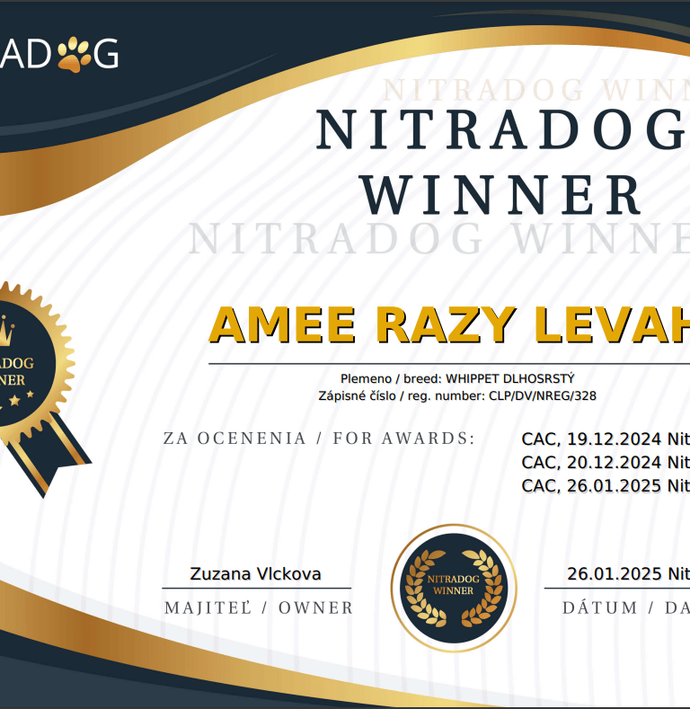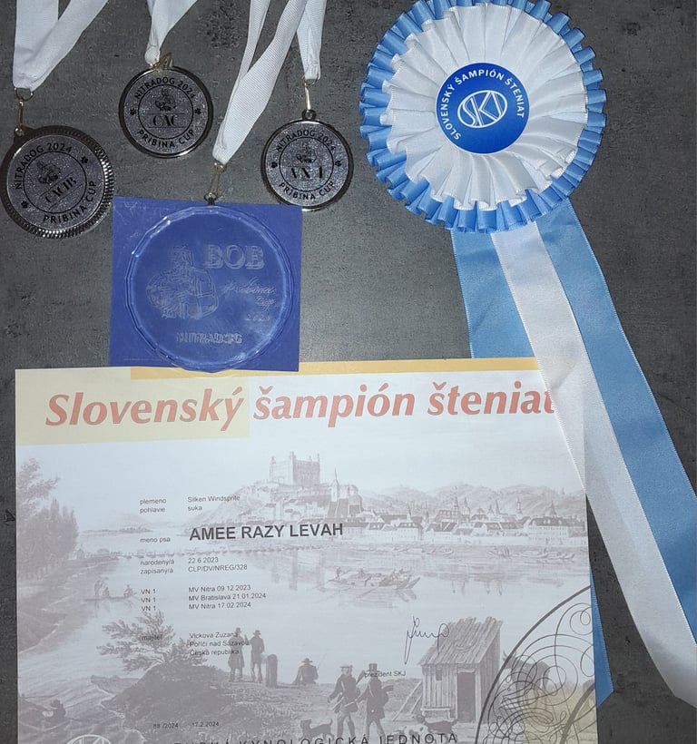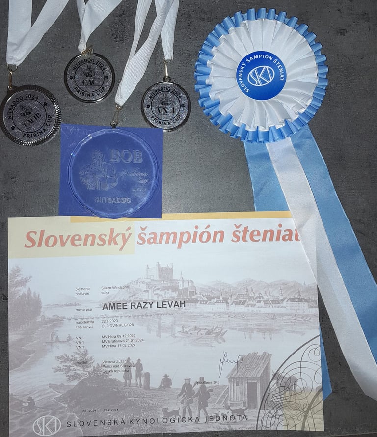 Ch. Amee Razy Levah (tř. otevřená) - V1, CAC, Amee splnila podmínky pro udělení Slovenského šampiona a také Nitradog Winner