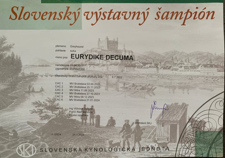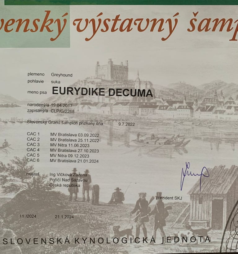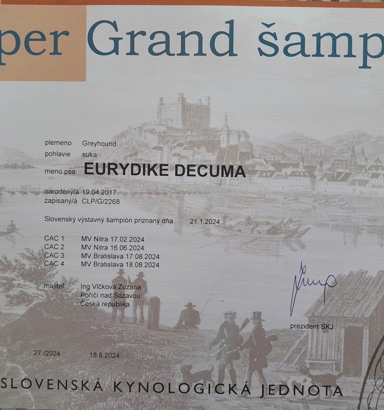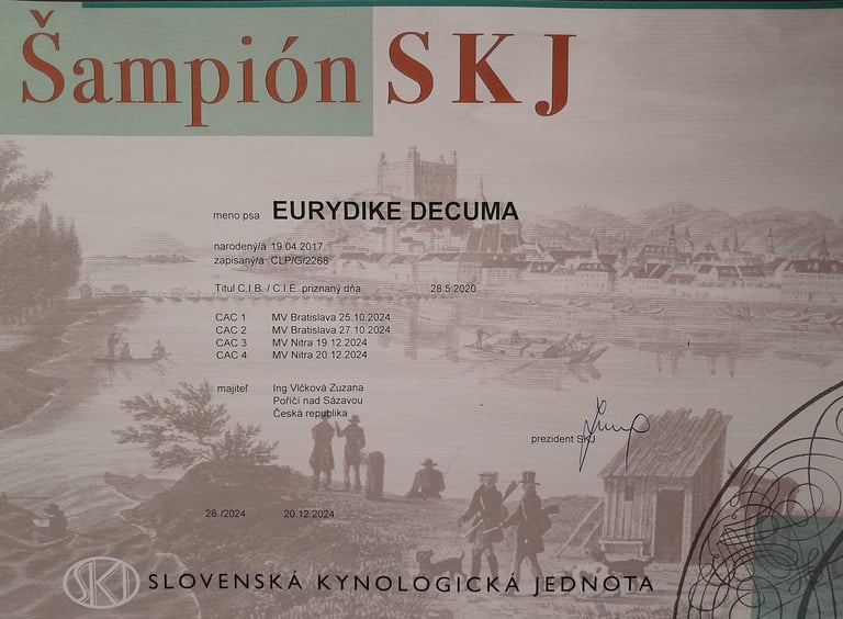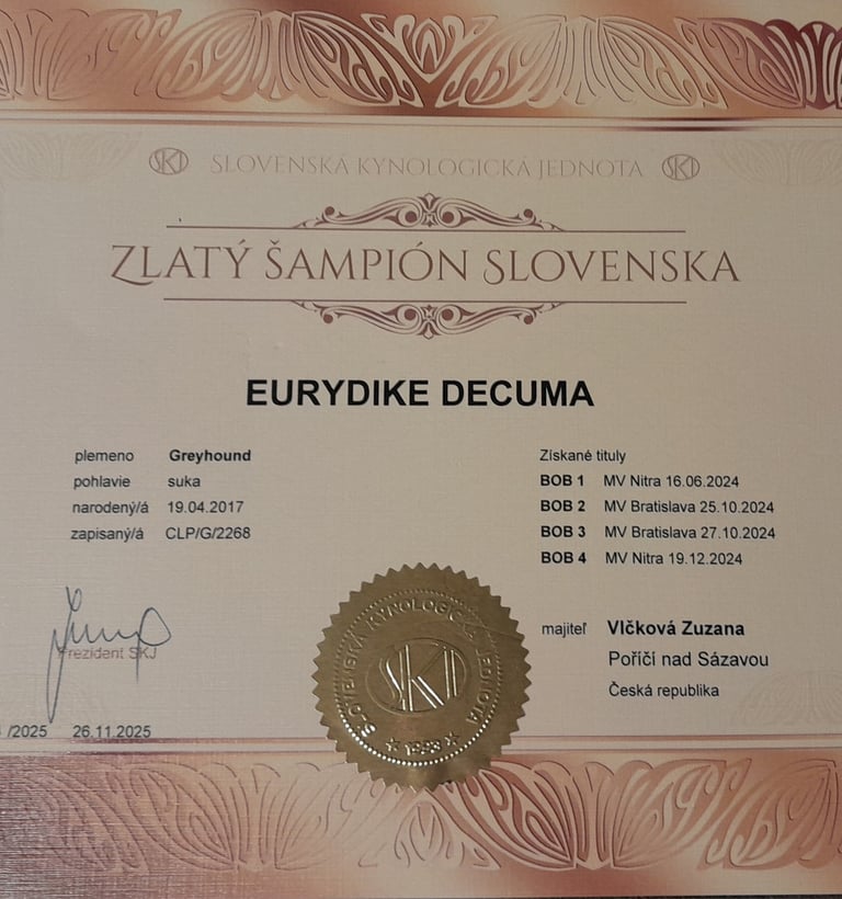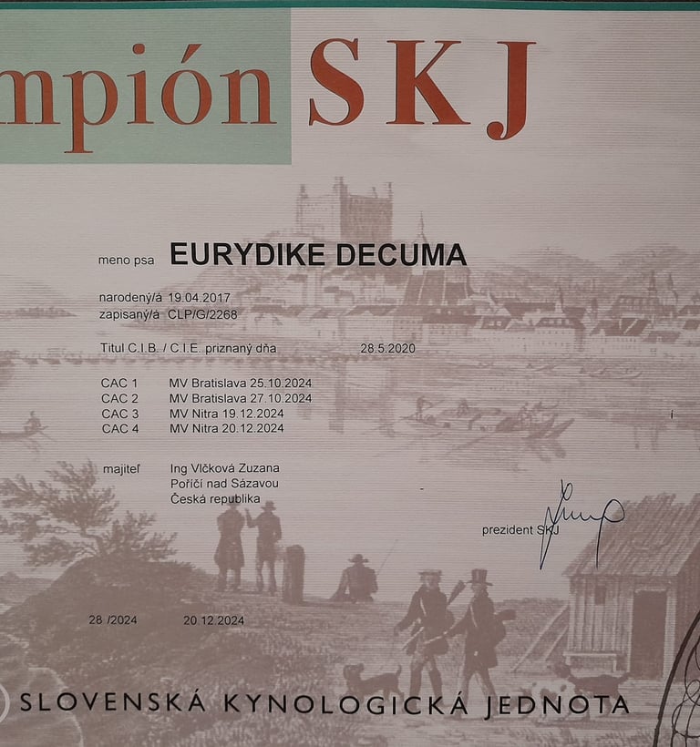 C.I.B. multi ch. Eurydike Decuma - V1 CAC, Gracinka splnila podmínky na Slovenského výstavného šampiona.