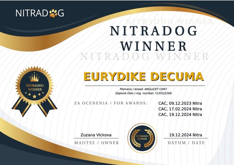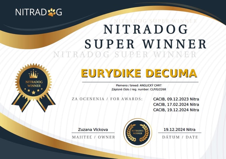 C.I.B. multi ch. Eurydike Decuma je Zlatý šampion!